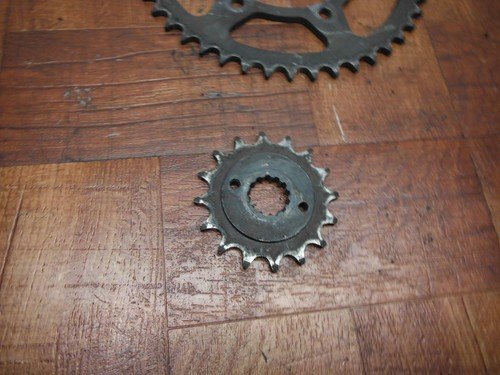 2007 kawasaki ninja EX500 EX 500 97-09 500r REAR & FRONT SPROCKET This rear sprocket is in very good condition and shows normal signs of wear. Removed From: 2007 Kawasaki Ninja 500R EX500D with 21,302 miles Please review all pictures to asses the condition of the item.